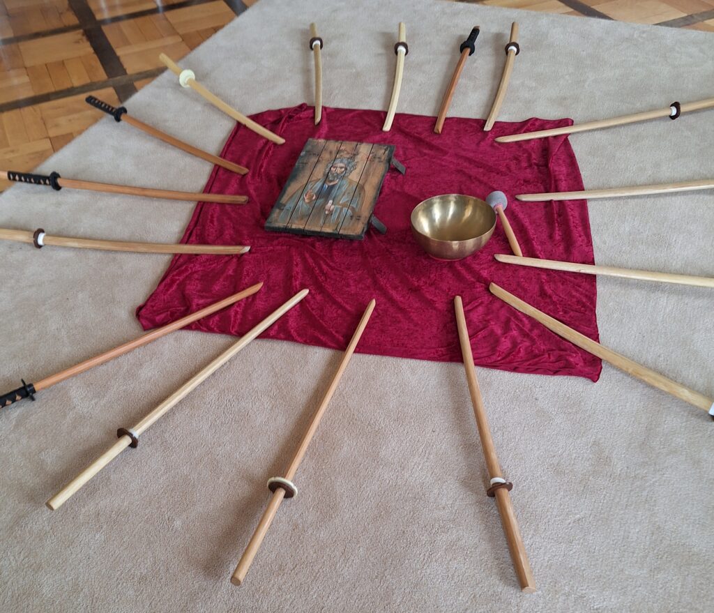 Wir nutzen das Schwert nicht als Instrument des Kämpfens, sondern es dient zur bewussten Auseinandersetzung mit den eigenen äußeren und inneren Haltungen. Mit verblüffend schlichten Körper- und Schwertübungen kommen wir in Kontakt mit uns selbst und dem gegenwärtigen Augenblick und finden Zugang zu unserer königlichen Energie: Verantwortung, Würde und Gelassenheit. Aus all dem erwächst Präsenz für Körperbewusstsein, Selbstvertrauen, Klarheit und Lebendigkeit, Standhaftigkeit, Eigenreflexion, Kommunikation und Gelassenheit als Voraussetzung für den friedlichen Umgang mit uns selbst und unseren Mitmenschen.